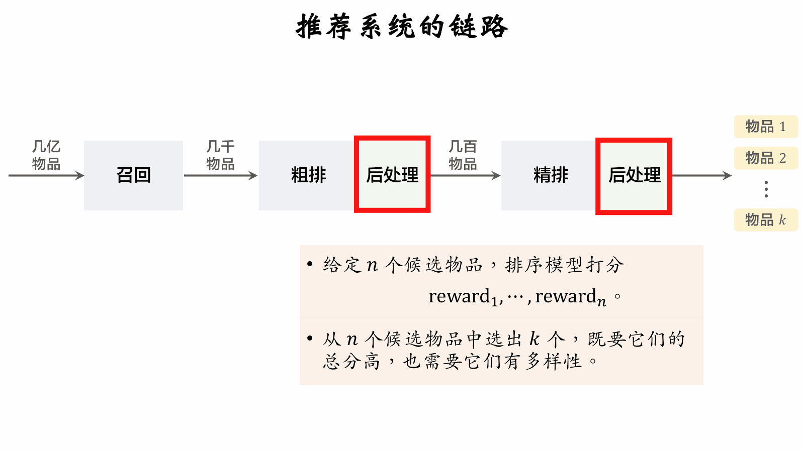 • 精排给 nn 个物品打分:reward1,,rewardn\text{reward}_1, \cdots, \text{reward}_n