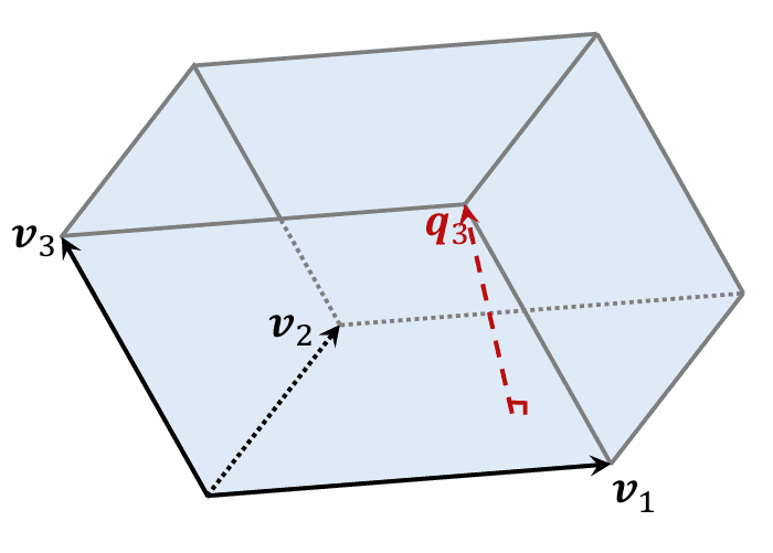 • q3\mathbf{q}_3 垂直于底 P(v1,v2)P(\mathbf{v}_1, \mathbf{v}_2)